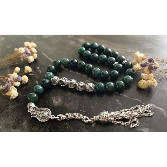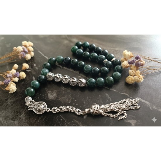 8 mm Yosunlu Akik Taşı 33’lü Tesbih | Kişiselleştirilebilir Doğal Taş Tesbih