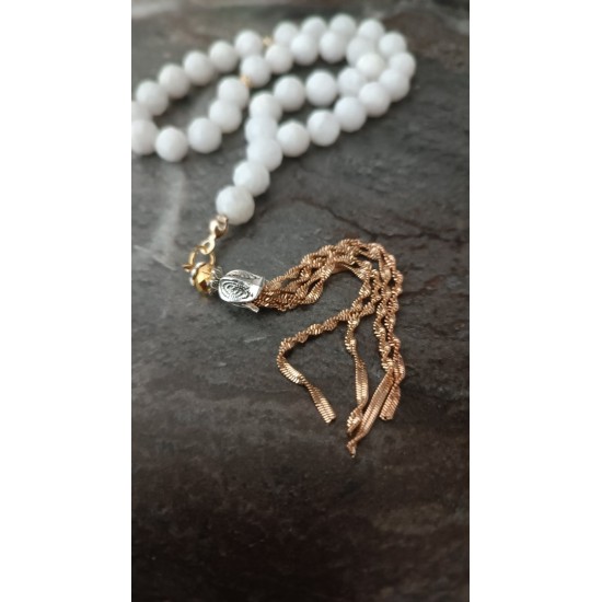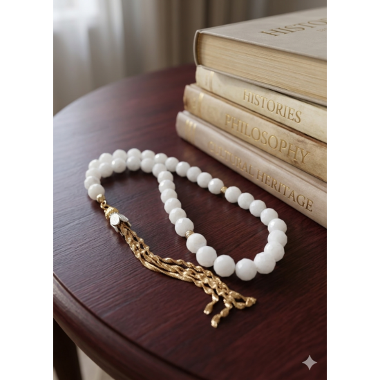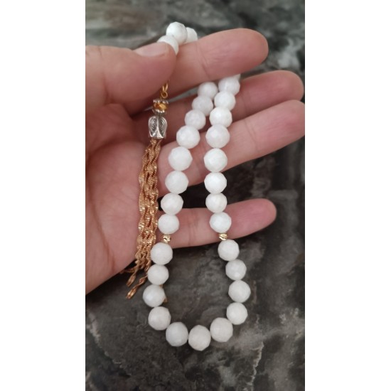 Aytaşı Tesbih 33'lü Faset Kesim Gold Püsküllü | Doğal Aytaşı İmameli El Yapımı Tesbih