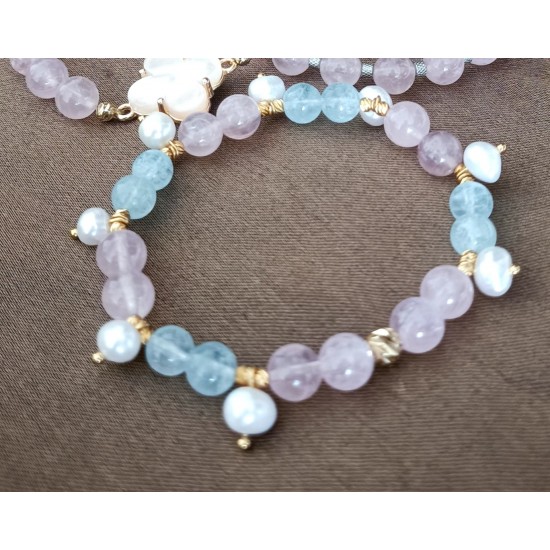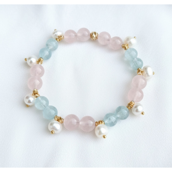 İnci Sallantılı Akumarin & Pembe kuvars Bileklik