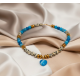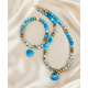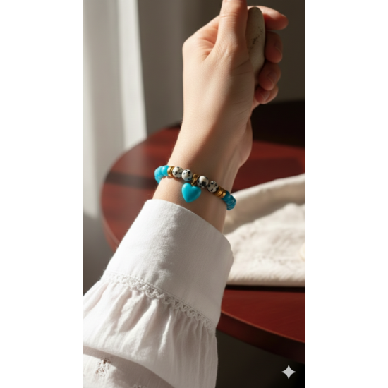 Dalmaçyalı Jasper ve Mavi Akik Doğal Taşlı Kolye Bileklik Seti, Mavi Kalp Kolye Ucu, Gold Hematit Detaylı El Yapımı Takı Seti
