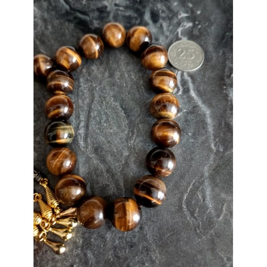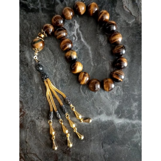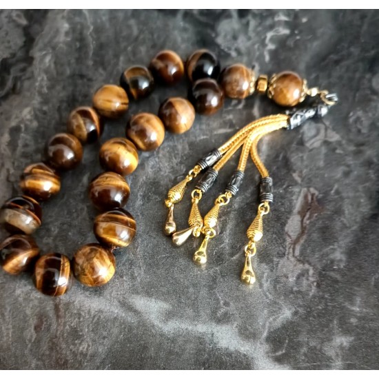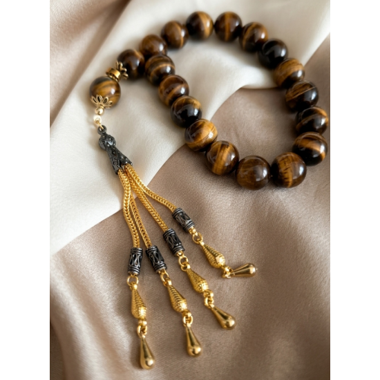 Kaplan Gözü Efe Tesbih Gold İmameli 17’li Doğal Taş Tesbih | Güç & Karizma Enerjisi