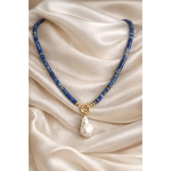 Rondela Kesim Lapis Lazuli Doğal Taş Kolye | Gemici Kilitli Barok Kolye Uçlu El Yapımı Tasarım